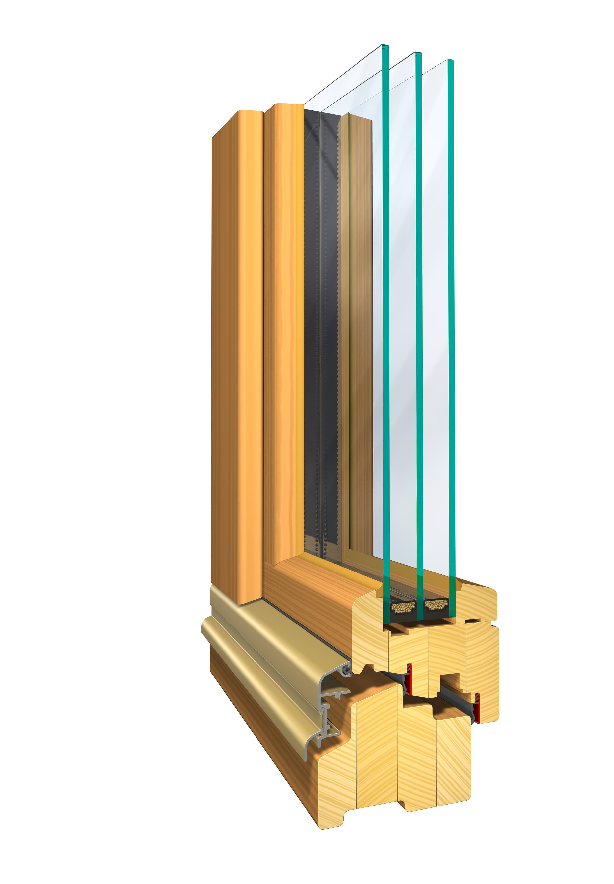 In den Querschnitten erkennen Sie die konstruktiven Unterschiede zwischen den Materialien Holz, Kunststoff und Aluminium und deren Vorteile.