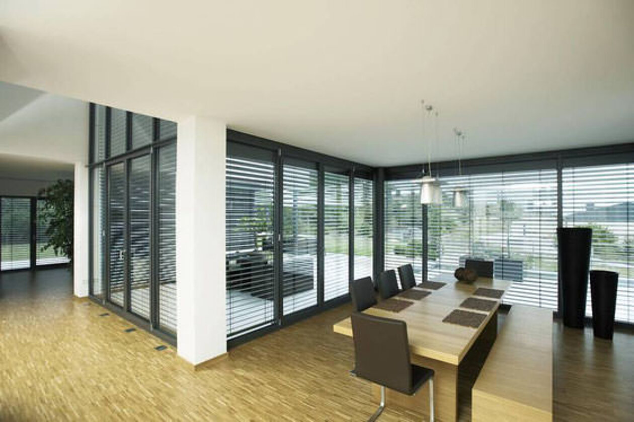 Raffstores bieten einen flexiblen Sicht- und Lichtschutz, der gleichzeitig zur Sicherheit beiträgt. Dank verstellbarer Lamellen ermöglichen sie eine besonders flexible Lichtregulierung – von totaler Verdunkelung bis zur gezielten Tageslichtlenkung. Gleichzeitig bieten sie Sichtschutz und reduzieren die Aufheizung der Räume im Sommer deutlich. Optisch passen sie sich perfekt an moderne Fassaden an und lassen sich auch großflächig einsetzen, z. B. bei bodentiefen Fenstern. Eine Integration in Smart-Home-Systeme ist ebenfalls möglich.